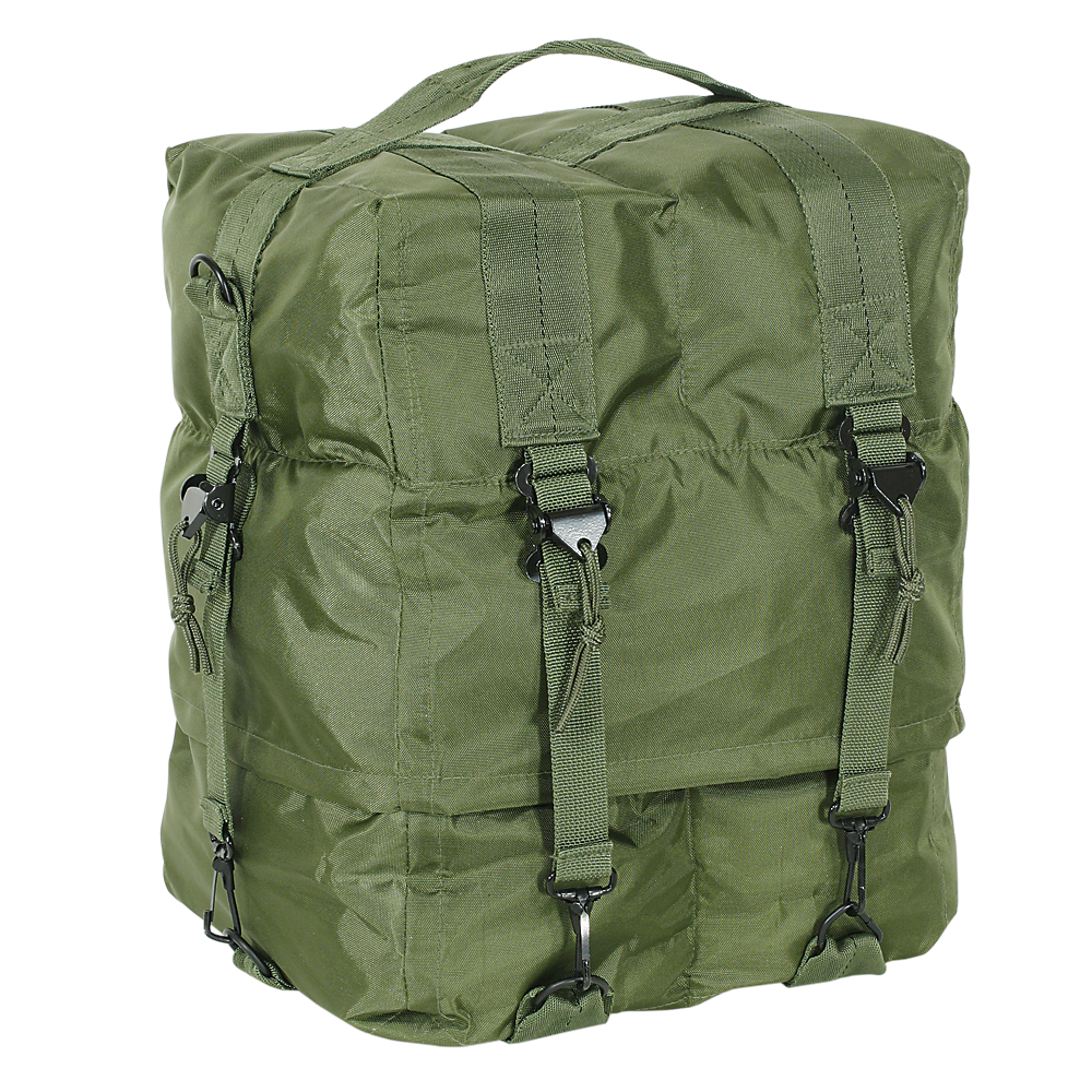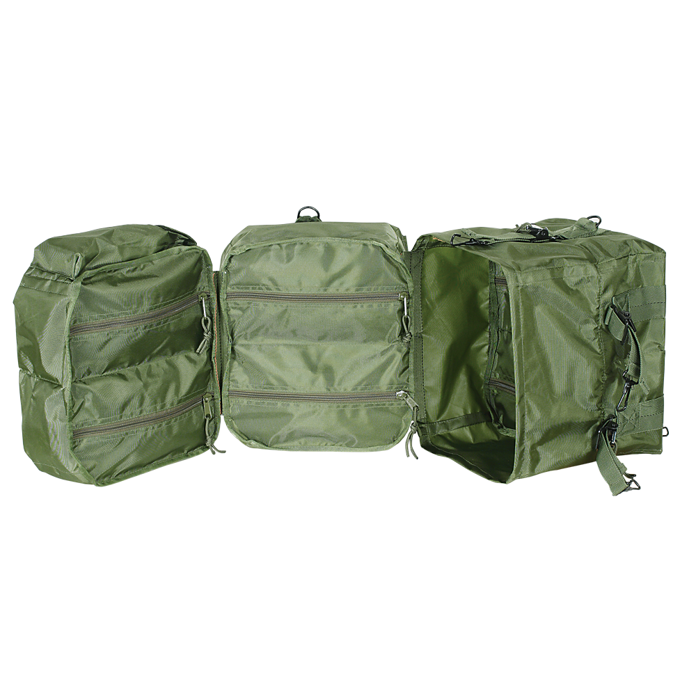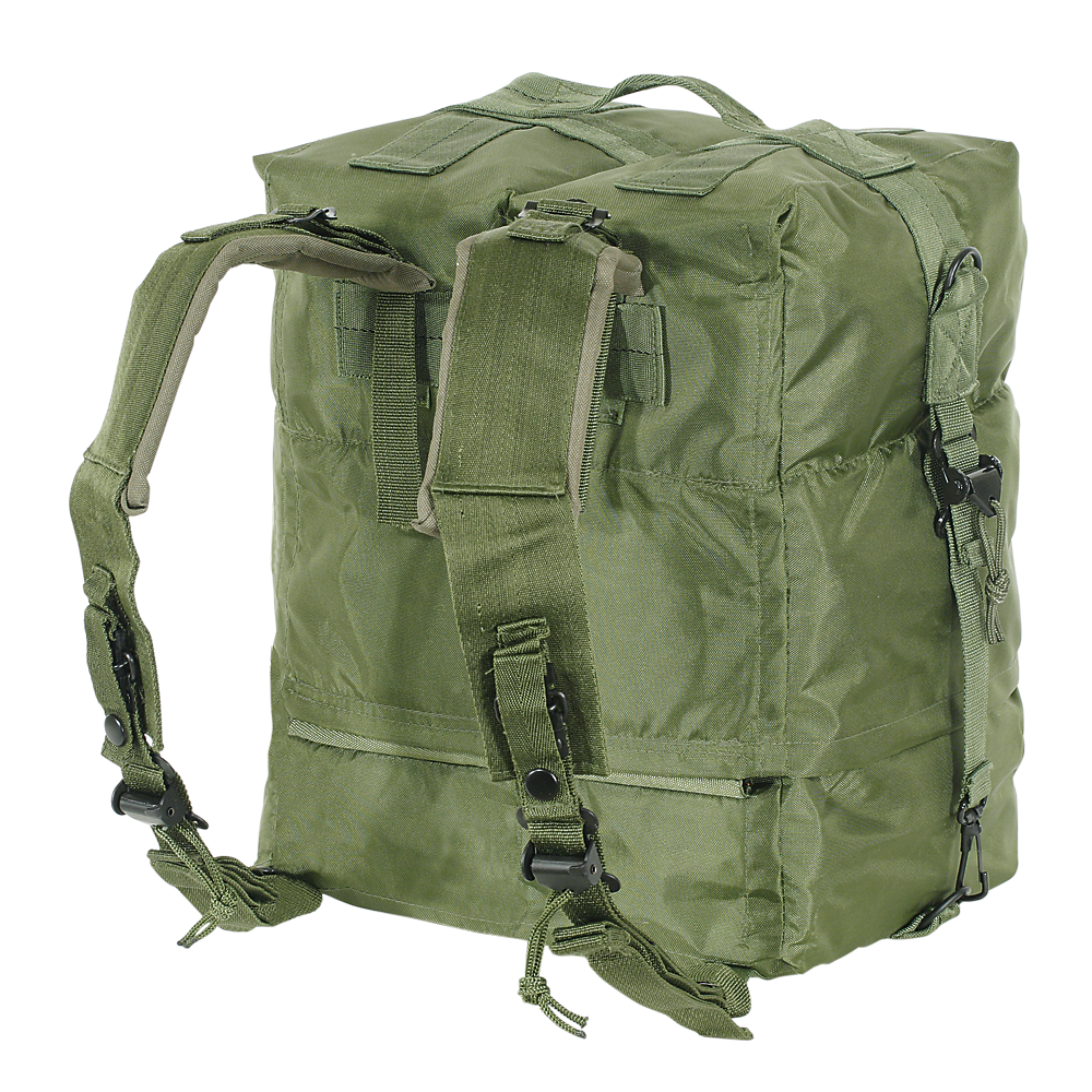 Packed in a new O.D. G.I. style nylon medic compression bag with G.I. style quick-release LCII shoulder straps. Unclips to reveal 3 complete sections divided into 2 separate zippered compartments in each section. Heavily stitched nylon carry handle when not worn as a field pack. It contains almost every first aid item needed to treat at least 50 people. Everything from hand sanitizer, splints, bandages, dressings, eyewash and pads, creams, wipes, ice packs, shears, latex gloves, tweezers, scalpels, sutures, thermometer, pain relievers, stethoscopes, dental mirrors, etc. Measures 15"T x 12"L x 10"D. New Unissued. Weighs 14.70 lbs. Contents may vary.
