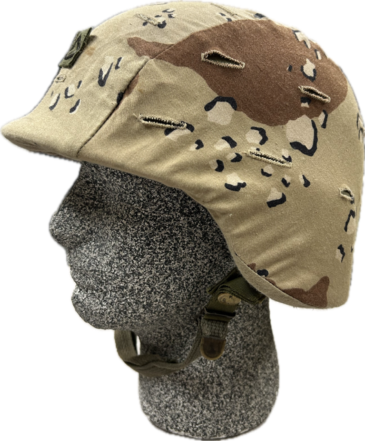 Each helmet comes complete with full suspension system, leather sweatband, chin strap, and 6-color desert (“chocolate chip”) camo cover.